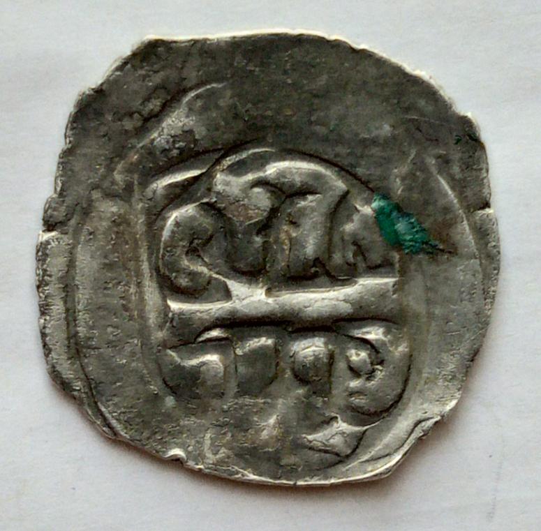 Möglicherweise stammt dein Exemplar nicht aus Österreich, sondern aus Bayern? Hätte in der Mitte ein Kreuz gesehen das beiderseits von ??? flankiert wird. Denke, dass der Balken in der Mitte senkrecht stehen sollte und habe für andere, die versuchen eine Lösung zu finden, den Pfennig jeweils um eine Vierteldrehung nach unten oder oben gedreht.