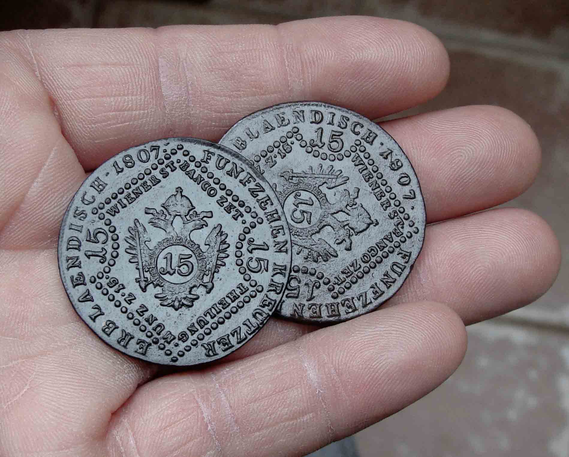 Auf meinem beigefügten Foto finden sich zwei Fünfzehner aus Bodenfunden, die selbst in dieser relativ guten Qualität, bei einem Verkauf nur maximal einige Euro erzielen würden.