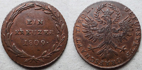Tirol 1 Kreuzer 1809 Hall , vz. , 4,66g , 50,00.JPG [ 88.76 KiB | 11491-mal betrachtet ]