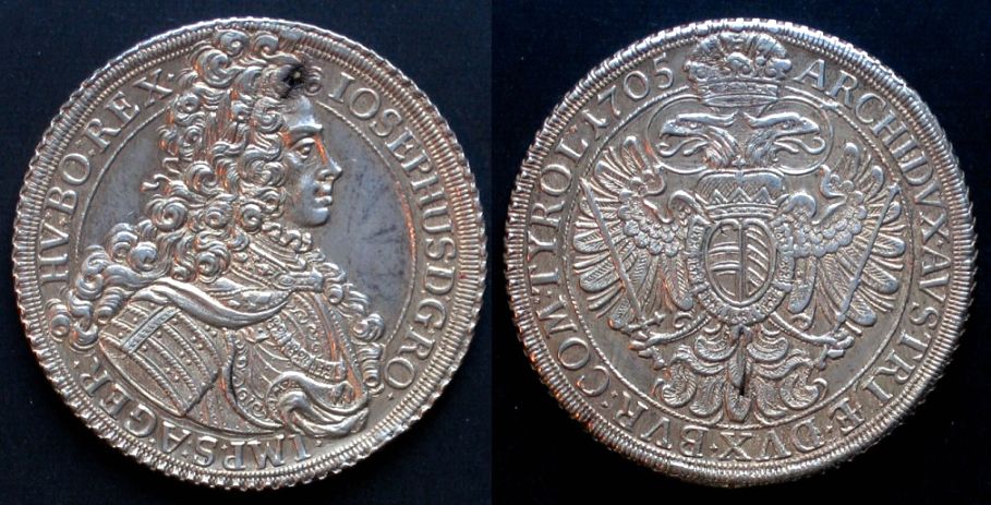 Bei Durchsicht dieses Threads habe ich festgestellt, daß noch der eine oder andere Herrscher fehlt. Einen kann ich beisteuern: Joseph I. (1705-1711). Über seinen recht kurzen Lebensweg und seinen fidelen Lebenswandel kann man hier einiges nachlesen. Zu dem Stück selbst ist zu sagen, daß es einige böse Schrötlingsfehler aufweist, die allerdings nicht an markanter Stelle stören und sich auf den Preis sehr erfreulich ausgewirkt haben. Weniger schön ist, daß ich keine eindeutige Referenz gefunden habe. Vielleicht kann die jemand nachtragen!? Gruß klaupo