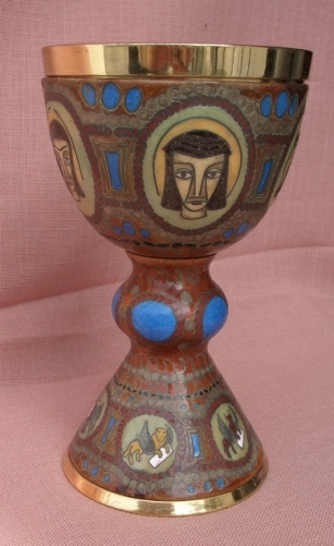 Die Abbildung auf der Münze nach einem Entwurf von Kurd Bodlak trifft den Kelch sehr gut, die aufgenieteten Nielloplatten sind ebensogut erkennbar wie die Umschrift und die Ornamente.