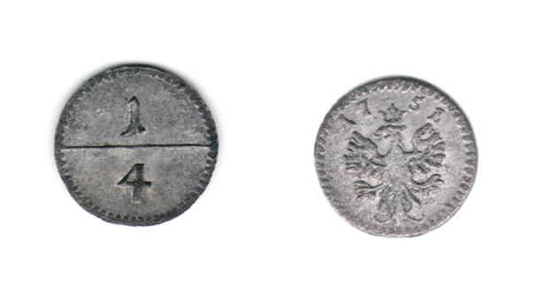 Wie versprochen bringe ich diesmal den einseitigen ¼ Kreuzer aus dem Jahre 1750.