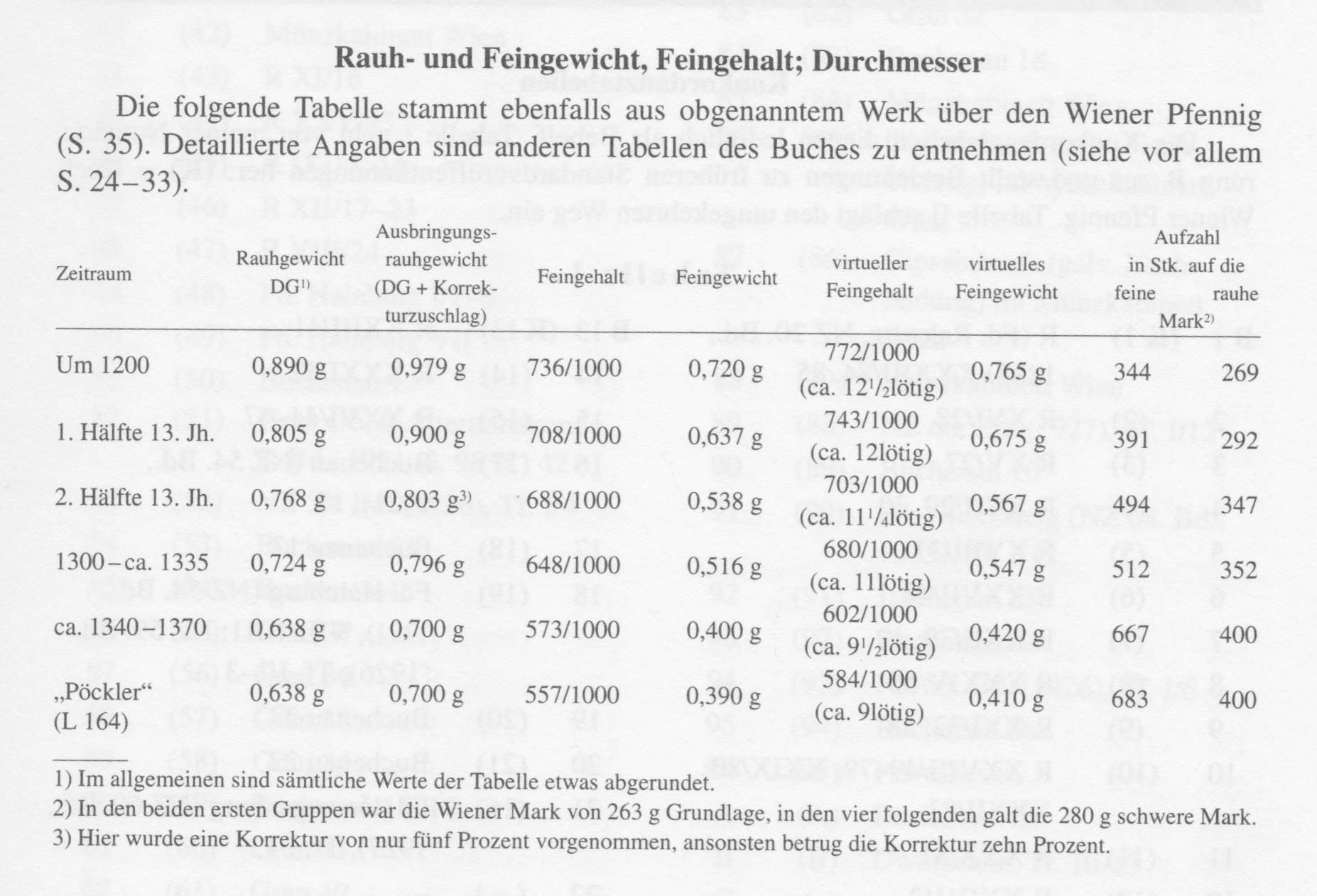 Aufschluss über die Entwicklung des Wiener Pfennigs ergibt die bereits weiter oben eingefügte Tabelle.
