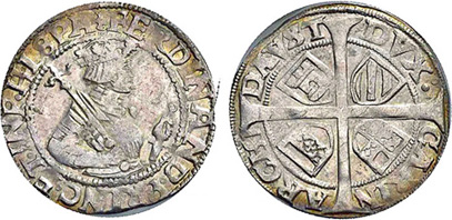 Da ist auffällig, dass die Umschrift des 2. Stückes auf Ehz. von Kärnten und Herzog von Burgund lautet