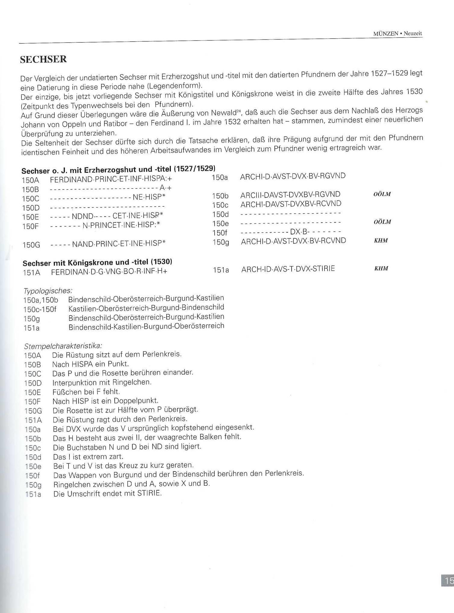 zur Prägetätigkeit in Linz kann ich dir wieder eine Seite aus dem Hippmann schicken. Sechser wurden demnach nur 1527-1730 gebprägt, wobei der Hauptausstoß gleich zu Beginn war (5000 St.).