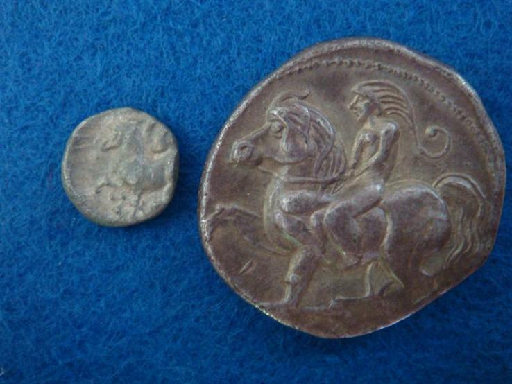 Der Helmbuschreiter auf Deiner wunderschönen Tetradrachme hat seinen Ursprung bei den frühen Prägungen der Skordisker und war dort auch am meisten verbreitet.