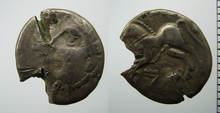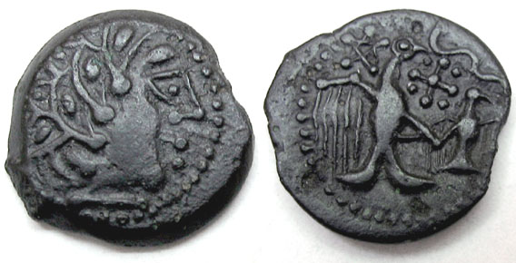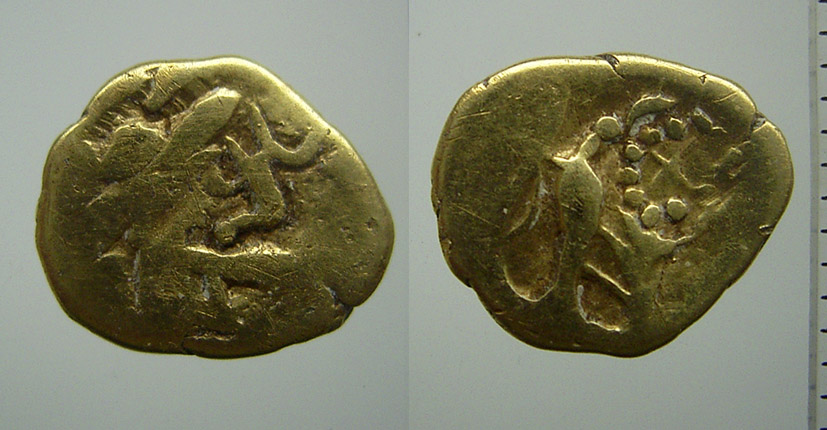 Laut Louis-Pol Delestrée & Marcel Tache, Nouvel Atlas des monnaies gauloises II. De la Seine à la Loire moyene (Saint-Germain-en Laye 2004), S. 130 f. und Taf. XXIII gehören diese Münzen zu einer Serie von Geprägen, welche sowohl Goldmünzen (Halb- und Achtelstatère) als auch die von taurisker vorgestellten Bronzemünzen mit Adler (DT 2582) umfasst, unter anderem auch Halb- und Achtelstatere mit Legende ( ATIIVLOIB u. SOLIM.YC (1/2-Statere) bzw. SOLIM.YC (1/8-Statere)), demzufolge datieren sie relativ spät (Endphase des Gallischen Krieges - Zeit vor Augustus). Der vorliegenden Münze entspricht am ehesten DT 2570.