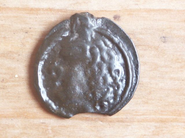 Av: Kopf nach rechts mit großer Stirnlocke und (hier nicht deutlichem) Kreuz auf der Wange