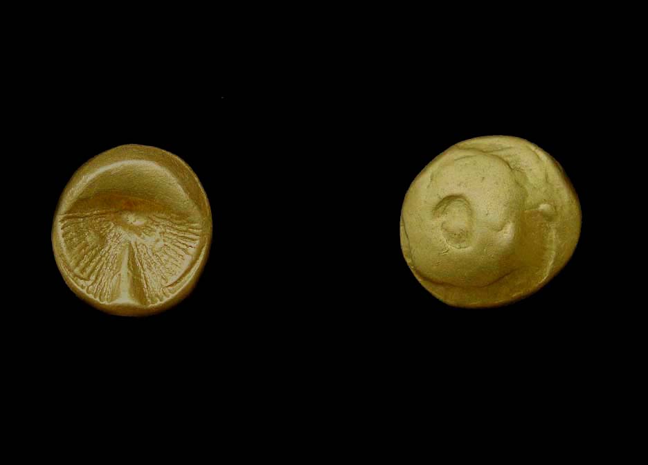 Das Stück ist prägefrisch und eines der wenigen, die eine perfekte Zentrierung des Reversstempels aufweisen. Das Reversbild erweckt fast den Eindruck eines stark stilisierten Gesichts von vorne.