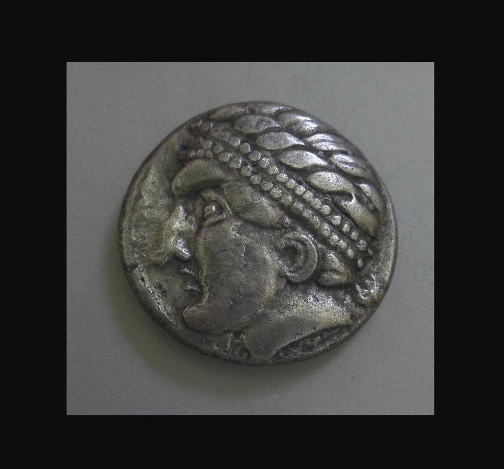 Äußerst realistisches Portrait, möglicherweise ein Apollokopf nach griechischem Vorbild. Stilistisch eine der frühesten Kroisbachervarianten und in puncto Qualität des Stempelschnittes unter den ostkeltischen Prägungen herausstechend.