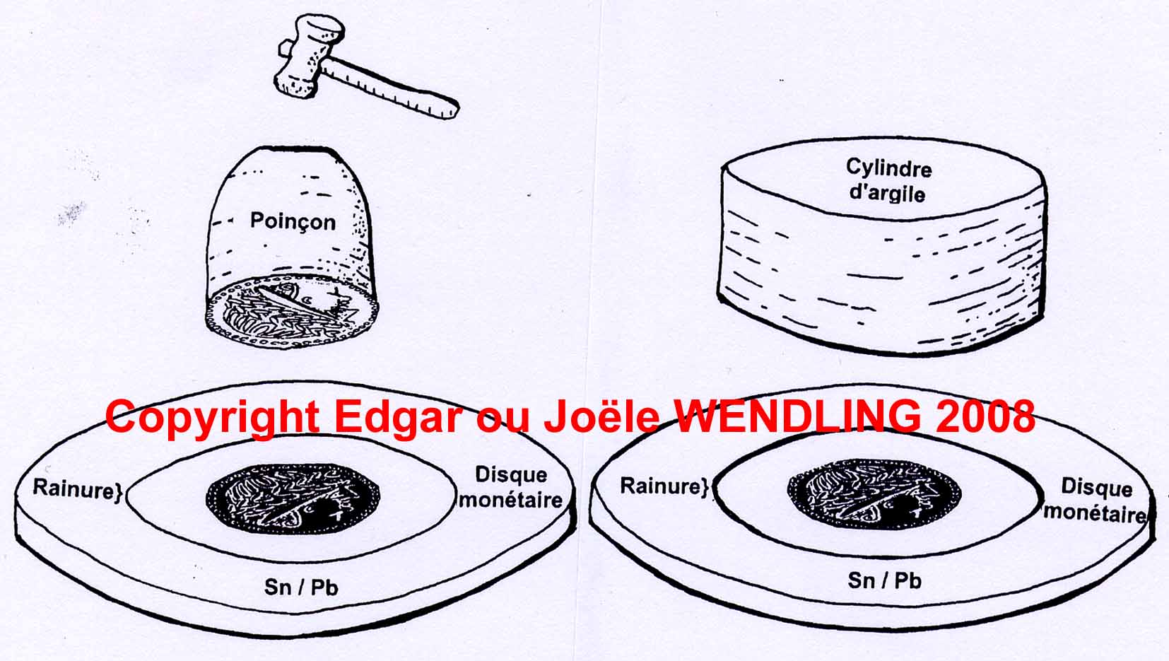 Dateikommentar: 1. und 2. Phase der Herstellung eines keltischen Münzstempels