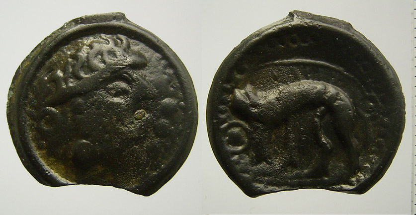den Typ "Potin mit Flammenhaar" hat PoTTINA bereits in diesem Thread vorgestellt. Ich möchte aber noch ein Exemplar hinzufügen, welches zum einen deutlich weniger 'ordentlich' aussieht als das bereits gezeigte Stück und erheblich leichter ist, es zum anderen aber auch für eine Münze der Treverer erstaunlich "weit gebracht hat":