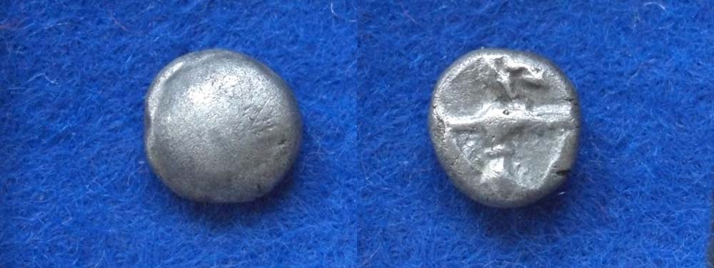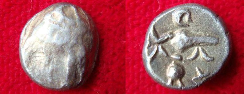 Diese Obole sind späte Imitationen der Goldprägung des Typs Athena- Alkis, am wahrscheinlichsten von Achtelstateren. Sie waren noch bis Ende der Neunziger extrem selten in der Standardliteratur zu finden ( 1 x Forrer, 1x Kolnikova).