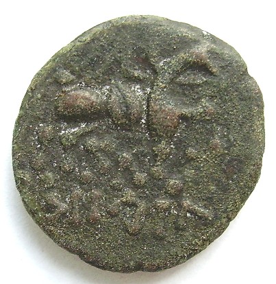 Es scheint eine 'Zaravetz' typ aus nord osten Bulgarien zu sein (II - I v. chr.). Es ist aber leider keine inschrift, sondern eine 'reste' von die Odessos prototyp: