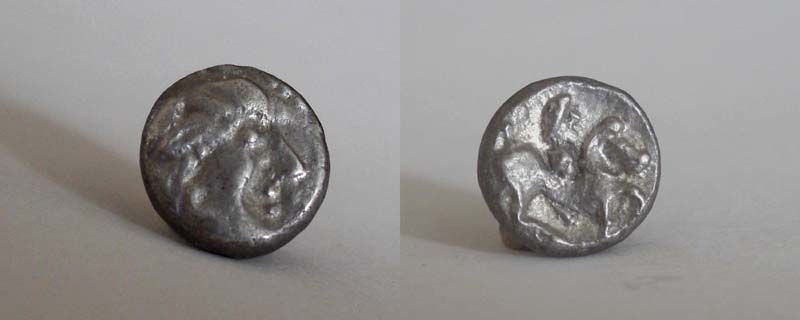welche möglicherweise vom Petasos des Königsreiters der Tetradrachmen von Philipp II abgeleitet ist.