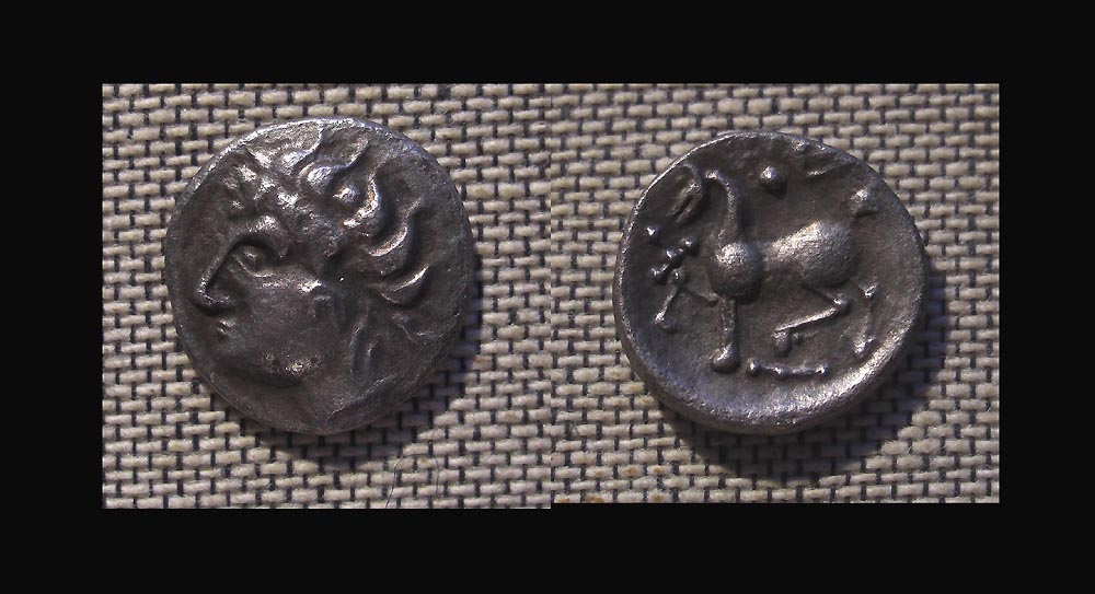 Die ostkeltischen Tetradrachmen des Typs Dreizack sind ja schon lange bekannt (z.B. Ziegaus 548). Die Reversdarstellung dieser Tetradrachmen wurde von den Boiern der Westslowakei für Drachmen, Hemidrachmen und Obole übernommen. Alle diese Nominale gelten als selten, von den Obolen gibt es etwas mehr Nachweise.