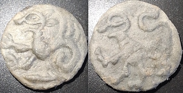 Potins aus Blei sind bekannt, aber kein vergleichbares Stück, Fundgegend wäre das nördliche