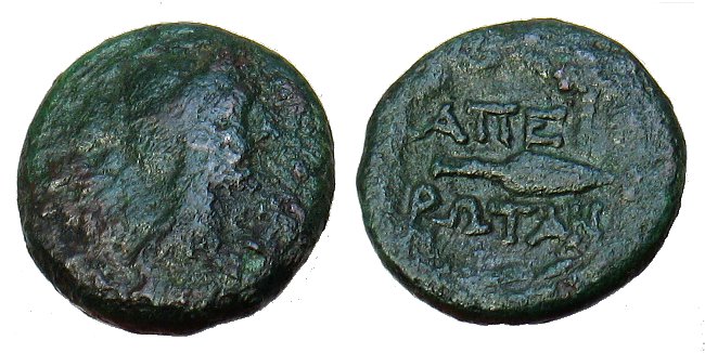 Rv.: AΠEI / PΩTAN; Speerspitze im Lorbeerkranz.