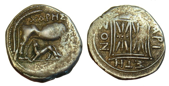 Zur Geschichte des Königs:Ballaios war ein illyrischer König der Ardiäer, über den wir aus schriftlichen Quellen so gut wie nichts wissen. Dennoch muss er eine bedeutende Herrschergestalt gewesen sein, der von seiner befestigten Hauptstadt Rhizon aus, wo sich wahrscheinlich auch seine Hauptmünzstätte befand, ein großes Gebiet beherrschte. Der Zeitraum seiner Herrschaft ist sehr unsicher und wird kontrovers diskutiert.