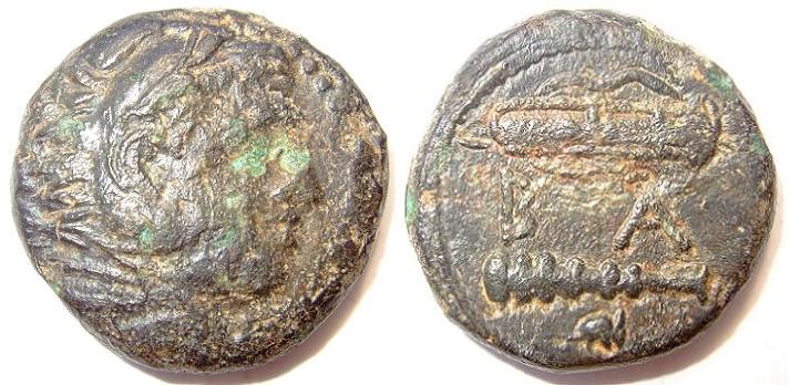 Diese Bronze wurde unter bzw. für Alexander III. den Großen, der von 336 bis 323 v. Chr. Makedonischer König war, von 325 bis 310 v. Chr., also auch noch nach seiner Zeit, geprägt.