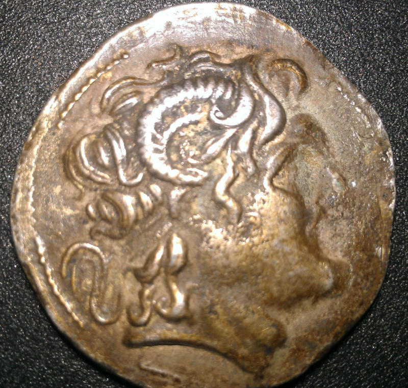 Hier mal eine Tetradrachme, die geprägt ist (deine ist es sicher nicht, die ist gegossen, wie schon gesagt, und das ist ein Beweis für eine Fälschung):