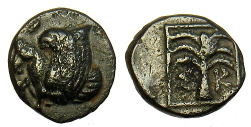 AR-Hemiobol der Trierer. Olynth(?). Ca. 400 v. Chr. 0,32 g; 9 mm.