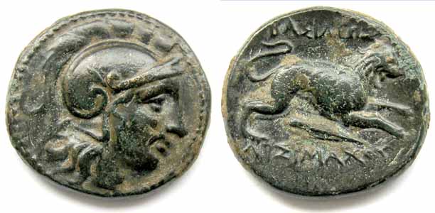 Diese Lysimachos Imitation stammt mit an Sicherheit grenzender Wahrscheinlichkeit aus eben diesen Zeiten nach Lysimachos´ Regentschaft ... im Februar 281 v.u.Z. standen sich die zwei letzen Teilnehmer des Alexanderzuges in der Schlacht von Kurupedion gegenüber. Lysimachos wurde vollständig besiegt und getötet, Seleukos gewährte ihm ein königliches Begräbnis in Lysimacheia. Kleinasien fiel an die Seleukiden, Thrakien und Makedonien übernahm Ptolemaios Keraunos, der aber 279 v. dem Ansturm der Kelten erlag, die in Thrakien eigene Fürstentümer gründeten ... weiters drangen die Kelten nach Kleinasien vor: die durch antike Autoren bezeugte Einwanderung keltischer Stämme bis nach Anatolien geschah ebenfalls um diese Zeit und sie nannten sich hier "Galater".