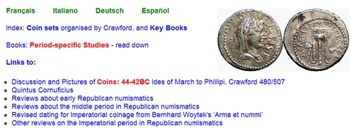 Ich habe meine Web site verbessert. Zwei wichtige neue Themen sind enthalten. Es gibt eine neue Seite über „gegenwärtige numismatische Forschung“ für die römische Republik.