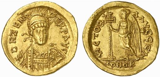 gibt es eigentlich eine Erklärung dafür, warum z.T. Legenden noch über längere Zeiträume beibehalten wurden, die zum Zeitpunkt der Prägung der Münze keinen Sinn mehr ergaben? Als Anlage habe ich ein Beispiel aus meiner Sammlung, einen Solidus des Zeno, den ich noch als römischen Kaiser werten würde, beigefügt. Auf der Rückseite wird auf die Siege von drei Augusti verwiesen (VICTORIA AVGGG). Diese gab es aber zur Zeit der Prägung definitiv nicht mehr.
