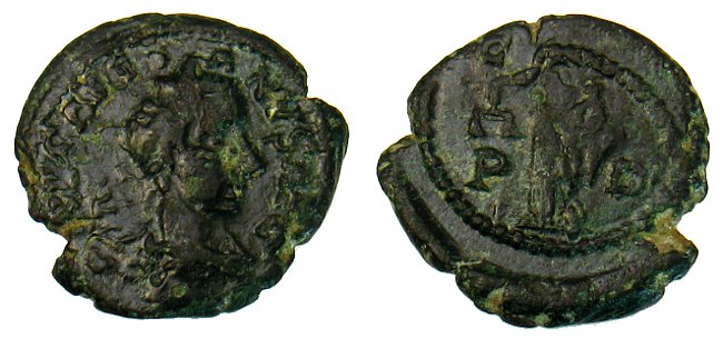 Thrakien. Deultum. AE19, Gordianus III., 238 – 244 n. Chr.; 4,10 g. Av.: IMP GORDIANVS AVG; drapierte, kürassierte und belorbeerte Büste n re., von hinten gesehen. Rv.: C F P D; Nemesis mit Waage und Stab n. li. stehend. Jurukova 302; SNG Bulgaria 1438.