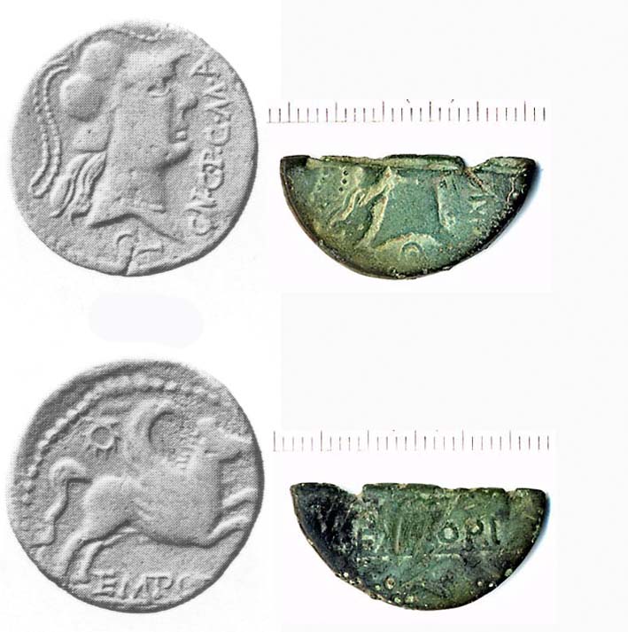 Die älteren Asses mit Januskopf wurden zu Dupondien umgemünzt und nach der Halbierung wieder zu Asses. Solche halbierte Asses wurden zu Hunderten im Westen gefunden. Die zweite Art der Halbierung fand unter Tiberius statt und betraf vor allem Reform-Asses des Augustus und Tiberius, sowie Provinzasses aus den gallischen Münzstätten (siehe Abb. 2). Dies scheint überwiegend in den Militärlagern entlang des Rheins der Fall gewesen zu sein und diente demselben Zweck, nämlich genügend Kleingeld in Umlauf zu bringen. Erst in der 2. Hälfte des 1. Jahrhunderts n. Chr. kam es, auf Grund eines kontinuierlichen Anwachsens der Münzprägung, zu einer Vereinheitlichung der zirkulierenden Münzmenge.