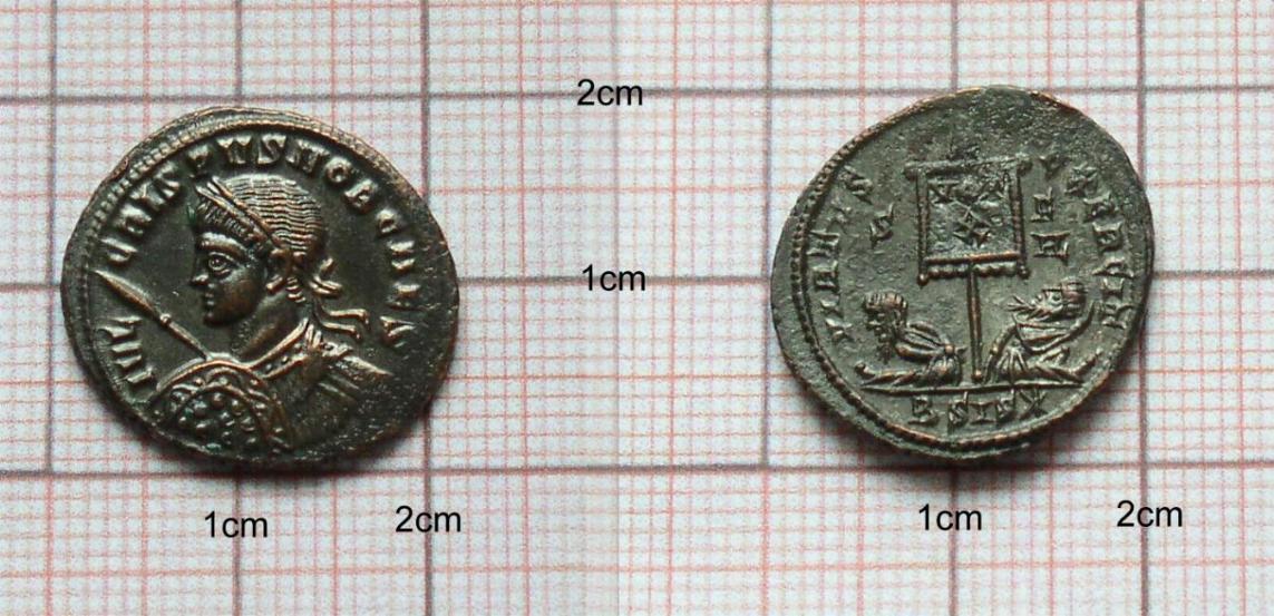 Damit der Crispus nicht nur zwischen Münzenputzer und Sulcipius aufgeteilt wird, Ihr habt übrigens Spitzenstücke, hier zwei Crispi aus Trier aus meiner Sammlung.