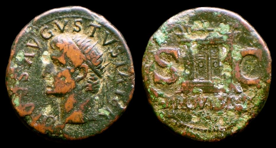 Die Strahlenkrone ist in diesem Fall ein Zeichen für die die Vergöttlichung. In diesem Fall handelt sich um ein As, auch erkennbar am rötlichen Metall.