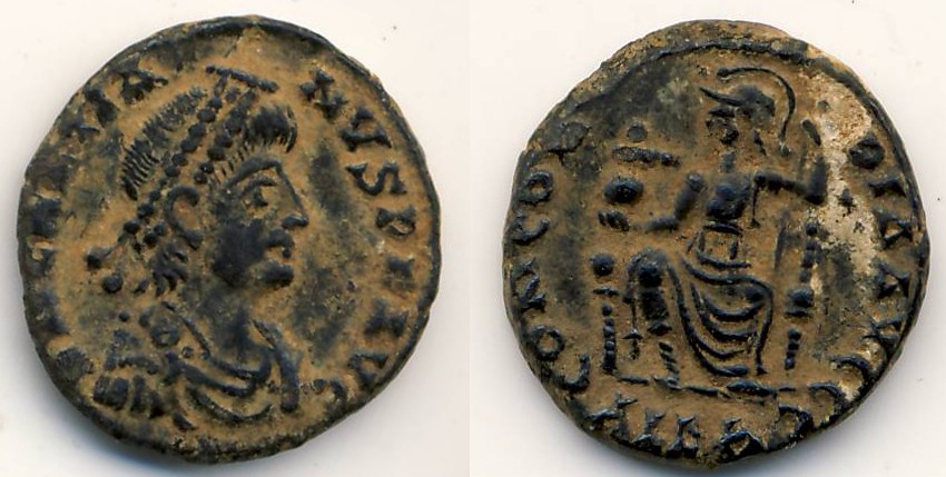Es soll sich auf der Rückseite ja entweder die personifizierte Roma oder die Constantinopolis befinden. Bei Alexandria würde ich zunächst einmal auf Letztere tippen, zumal ich Schild und Victoria nicht erkennen kann. Liege ich da richtig?