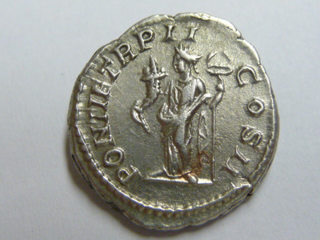 Der Typ ist auf seltenen Sesterzen und Assen von Domna längst bekannt, der Denar fehlt aber in Cohen und RIC und war im Fund von Reka Devnia auch nicht vorhanden. Wien aber besitzt ein Exemplar, das von Pink im Aufbau, Num. Zeitschrift 67, 1934, S. 10 verzeichnet wird, und das ich Seaby, Roman Silver Coins III, 1969, Nr. 251a bekanntgemacht habe, zusammen mit einem zweiten Exemplar, das ich selbst 1967 erworben hatte. 1973 erwarb das BM auch ein Exemplar, das in der 2. Ausgabe von BMC V, 1975, S. 435, Nr. 33A veröffentlicht wurde. Seither sind noch ein paar Exemplare auf dem Markt erschienen, zufälligerweise habe auch ich vor einem Monat ein zweites, besser erhaltenes Exemplar von anderen Stempeln gekauft.