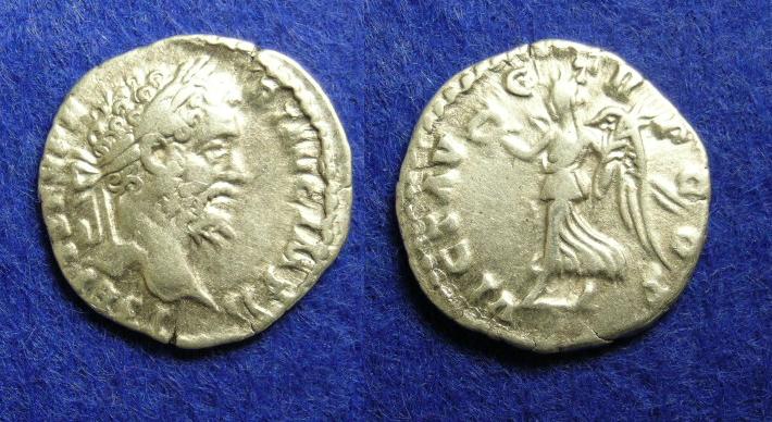 Die Münzen mit dem Titel IMP II sind alle selten, da auf die 2. imperatorische Akklamation im Rahmen der Bürgerkriege sehr schnell die 3. folgte (IMP III ist deutlich häufiger). Die IMP II-Münzen wurden wohl um den Jahreswechsel 193 / 194 geprägt, da z.B. RIC diesen Typ mit der Rs.-Legende VICT AUG TRP II COS II PP zitiert (RIC 29A). Dieser Münztyp steht im - alten - RIC noch nicht, meines ist, wie mir Curtis sagte, das dritte bekannte Exemplar von denselben Stempeln.