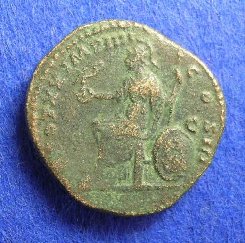 Solch eine profane technische Angabe war es auch, die mich zum Kauf dieses Dupondius' verführte, der heute bei mir eingetroffen ist: Einem Dupondius mit 17,7 Gramm konnte ich nicht widerstehen. Darüber hinaus scheint dieser Münztyp (RIC 928) nicht ganz häufig zu sein; RIC zitiert die Oxforder Sammlung, in Wildwinds ist kein Exemplar abgebildet.