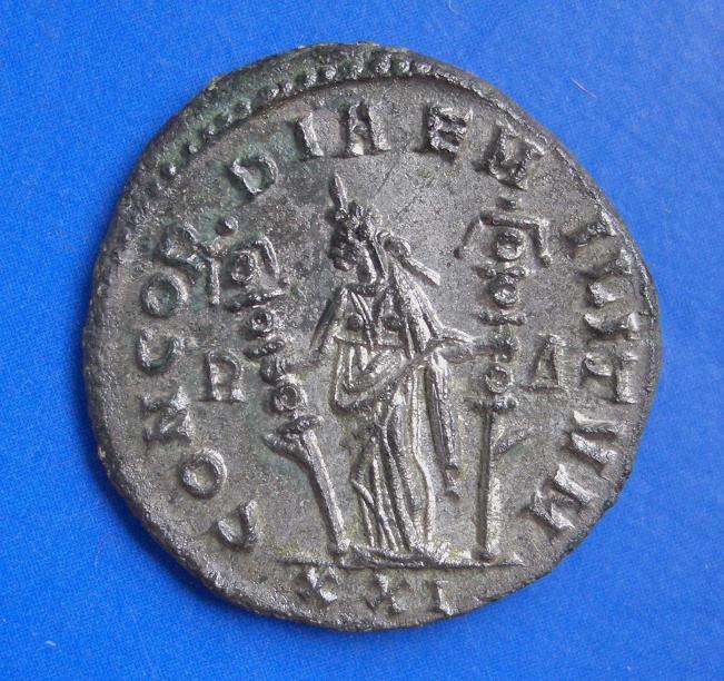 Den selben Typ wie tauriskers Münze gibt es mit gleicher Legende auch noch noch aus Mediolanum (RIC 135), da hilft nur der Stil weiter. Nach umfangreichen Vergleichen bin ich der Meinung, mein plattnasiger und langhalsiger Aurelian kommt aus dieser Münzstätte.