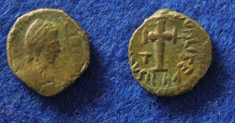 Bei mir in der Sammlung sind die seltenen Kaiser eher dünn gesät; diese Münze, die mir jetzt ganz frisch ins Netz gegangen ist, hatte ich schon im "Christliche Spätrömer"-Thread vorgestellt.