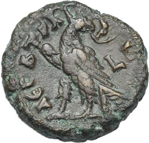 Carinus, Alexandria , AE tetradrachm, A K MA KAPINOC CEB, laureate, draped & cuirassed bust right / LEG B TPAI, eagle standing left, head right with wreath in its beak, LG in right field. Emmett 4004, Dattari 5593, Milne 4742.