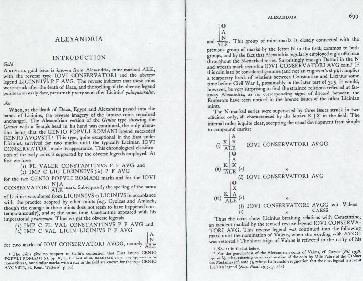 Ich möchte nur rasch hier das passende RIC Zitat zu Alexanders´Münze bekanntgeben: RIC Band VII /Seite: 705; Nr: 10; gepr.: 315