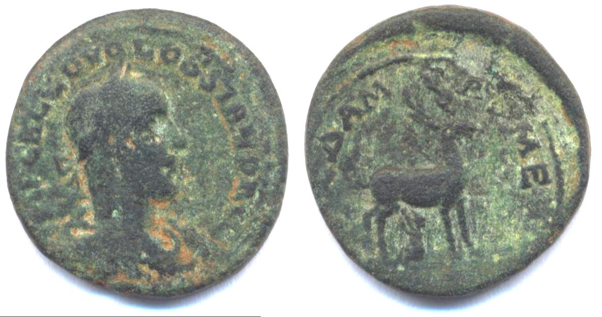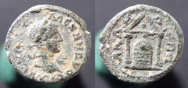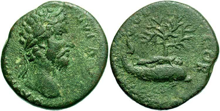 Anm.: NCP = Imhoof-Blumer & P. Gardner, Numismatic Commentaries on Pausanias, London 1887. Der Neudruck von 1964 zeigt 3 Münzen mit Hippolytos, davon ein Ex. Hippolytos als Jäger mit Hund. Das wird diese Münze sein. Pausanias erwähnt 'eine archaische Statue'. Möglich, daß es sich dabei um diese Abb. handelt (Pat Lawrence)