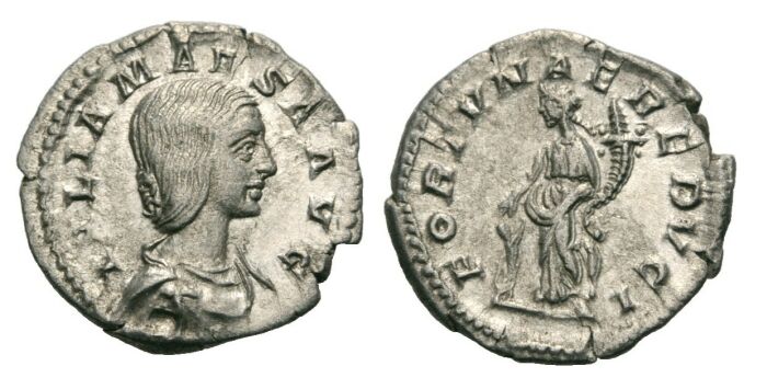 80. Ivlia Maesa, AR Denarius, 220; O. IVLIA MAESA AVG, R. FORTVNAE REDVCI, ; RIC 252, C. 14; 2.6g; ( # 392); aEF 57$