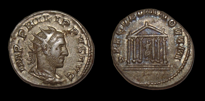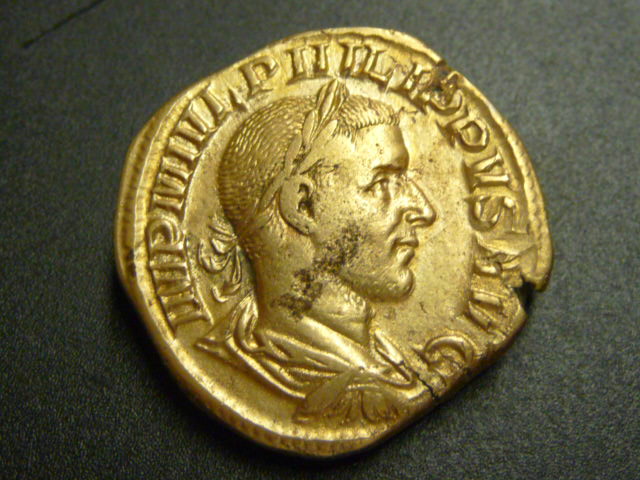 Als erstes denkt man sicher an fulmen = Blitz, also dieses Ding, das Jupiter so gern auf Münzen des 3.Jh. in der Hand hält; aber was soll Laetitia damit? Die Freude am Blitzeschleudern?? Außerdem wäre das Verb dazu "fulminare" (daher fulminant), der Täter also der Fulminator (nicht auf römischen Münzen - von der Variante fulgur kommt "Iovi Fulgeratori", wie es unter Diokletian zu finden ist). Google spuckt bei der Suche nach "Fulmennat" eine einsame Textstelle aus einem Buch von 1837 aus ("Die Deutschen und die Nachbarstämme" von Johann Kaspar Zeuss, einem oberfränkischen Landsmann von mir): http://books.google.de/books?id=1WIPAAA ... at&f=false , nach der es im germanisch-keltischen (heute deutsch-belgischen) Grenzgebiet ein Gau (pagus) Fulmenna gegeben habe. Ob der Hersteller der Münze stolz darauf war, daß seine Werkstatt die Freude der Fulmennatenser war??? Wir werden es wahrscheinlich nicht erfahren. Bemerkenswert ist, daß ein weiteres Exemplar dieses Typs - aus besserem Material oder mit unverletzter Silberschicht - hier veröffentlicht ist: http://ettuantiquities.com/Philip_1/Philip1-7.htm .