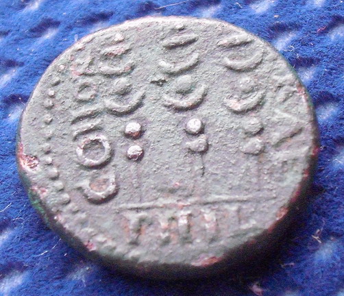 Es ist eine Provinzprägung des Augustus, zusammen mit dem Thrakerkönig Rhoemetalkes I und dessen Frau Pythodoris I.