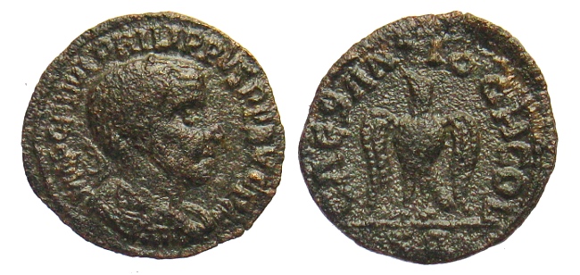 Rv.: CAES ANTIOCH COL // S R; Adler mit ausgebreiteten Schwingen n. li. stehend.