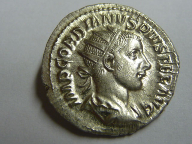 Av.: IMP C M IVL PHILIPPVS P F AVG P: drapierte, kürassierte und bärtige Büste des Kaisers mit Strahlenkrone n. re.