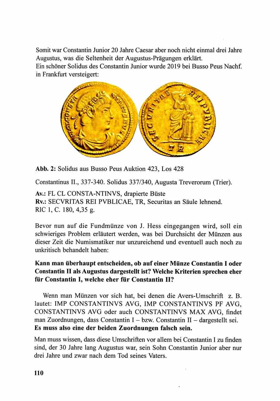 - Für die Sammler römischer Artefakte dürfte der sehr umfangreiche und informative Aufsatz von Wilfried Knickrehm über die Stempel der römischen Ziegelfabriken in und um Trier von großem Interesse sein. - Mit den Aufsätzen über die "Münzprägung des Aurelian in Trier" und "Damnatio Memoriae auf Münzen?" wurde ein Thema aufgegriffen, welches auch hier im Forum schon zu lebhaften Diskussionen geführt hat. - Hans-Jürgen Leukel widmet zwei weitere interessante Aufsätze bis dato unedierten Trierer Prägungen von Constantin II und III. - Ein weiterer Aufsatz beschäftigt sich mit dem interessanten Thema "Auswurfmünzen" aus der Prägestätte Trier an Hand zweier unedierter Stücke des Severus II als Caesar. - Und zuletzt möchte ich auf den Nachruf "Georg Elmer zur Erinnerung" hinweisen, einem hervorragenden Numismatiker des 20. Jahrhunderts, der nicht zuletzt durch sein imposantes Werk "Die Münzprägung der gallischen Kaiser in Köln, Trier und Mainz" aus dem Jahre 1938 bekannt wurde.