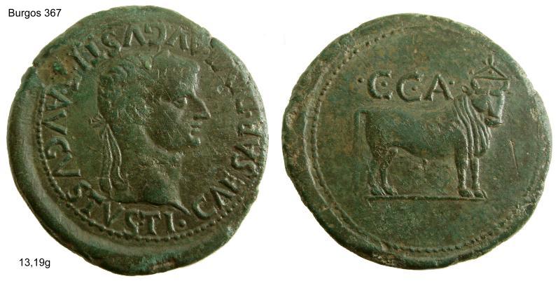 deshalb hier mal eine prägung aus der spanischen provinz, ein as aus colonia caesar augusta.
