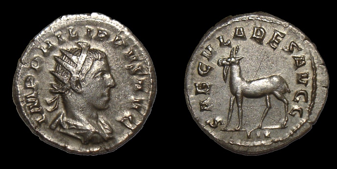 Von Philipp gibt's einige Allerwelts-Antoniniane, aber durchaus einige interessante Typen, wie die genannten Saecular-Prägungen.